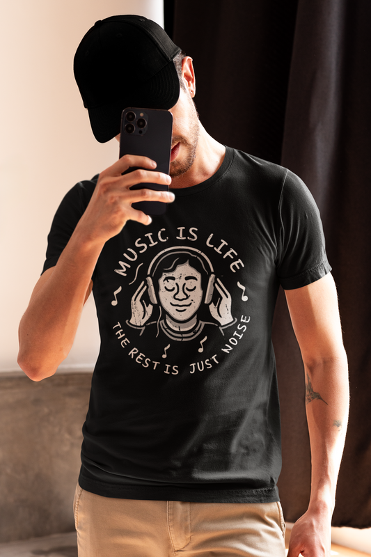 Music Is Life — The Rest Is Just Noise Tee (Vintage Headphones)