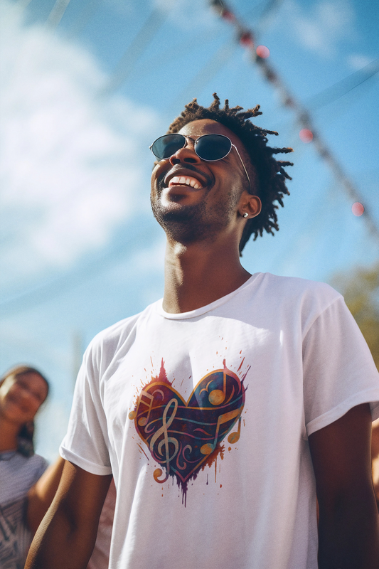 Colorburst Music Heart — Treble Clef & Notes Tee